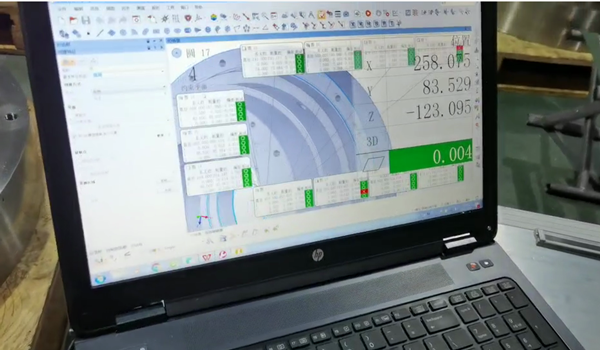 因工件大,搬到檢驗室用立式三坐標檢驗不方便,所以下面就由手持式三坐標現(xiàn)場檢驗。
