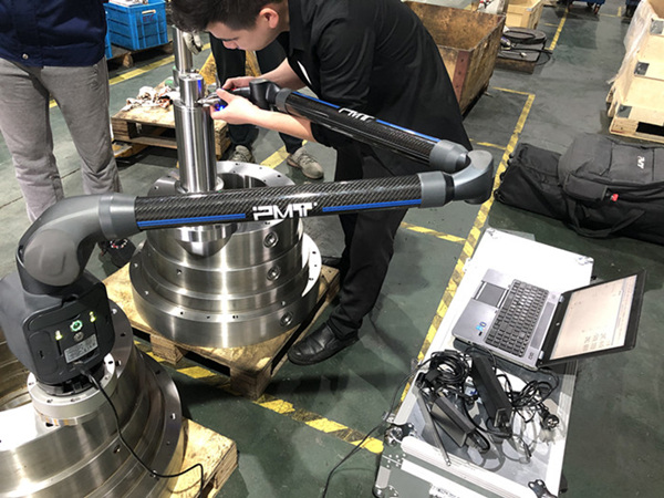 因工件大,搬到檢驗室用立式三坐標檢驗不方便,所以下面就由手持式三坐標現(xiàn)場檢驗。